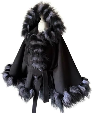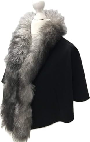 Elevate your formal look with this black short event cape featuring exquisite real fur trim. Perfect for evening parties, weddings, or special occasions, this luxurious outerwear piece combines elegance and warmth. Crafted with high-quality materials, it drapes beautifully over any outfit, providing a sophisticated silhouette. Ideal for those seeking a stylish and cozy wrap for formal events.