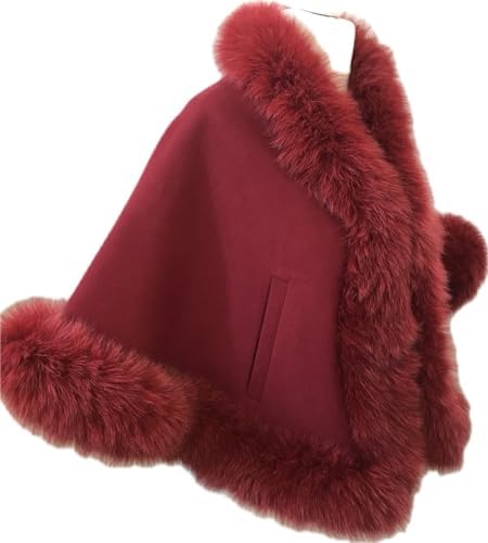 Cherry Wrap Elegant Women coat, Long Belted Feminine Overcoat Trim Fox Fur, Cashmere Woolen blend Coat Wrap