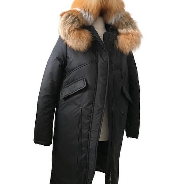 Coat parka women’s Gold fox fur, Black winter coat, Women coat with hood, Stand with Ukraine