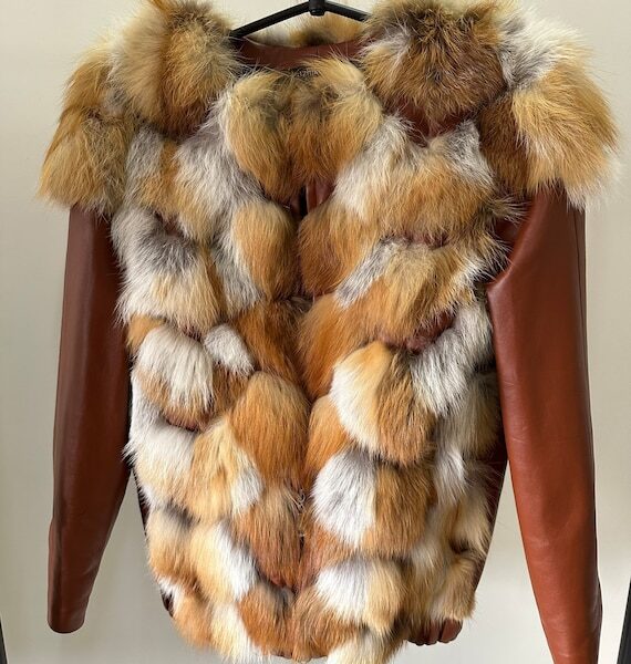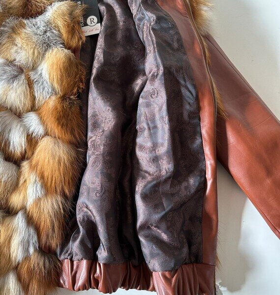 Women jacket сoat fox fur and leather, Stand with Ukraine